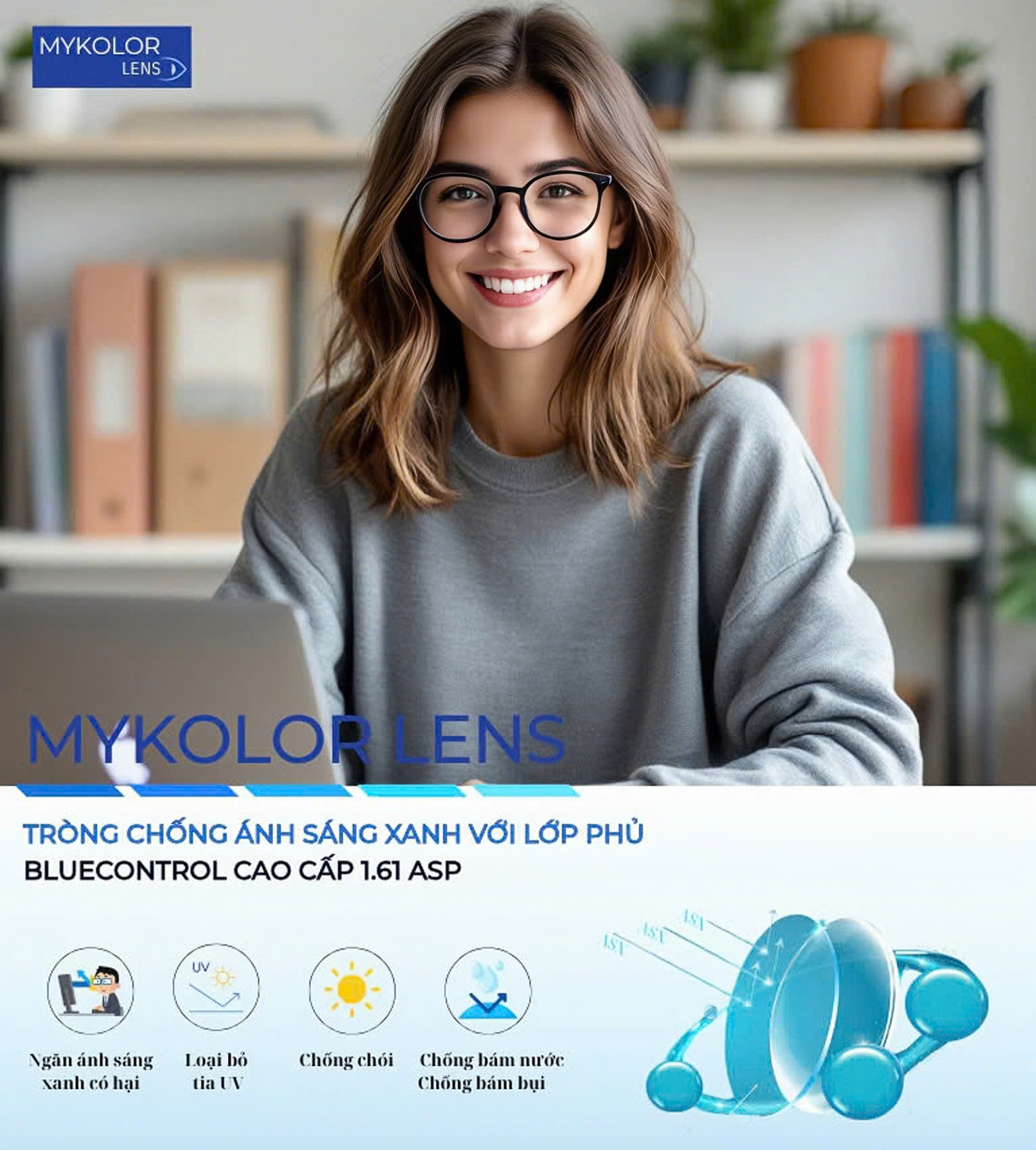 Giúp ngăn Ánh sáng xanh có hại, chống chói, loại bỏ các tia UV400 và chống bám nước, bụi bẩn.