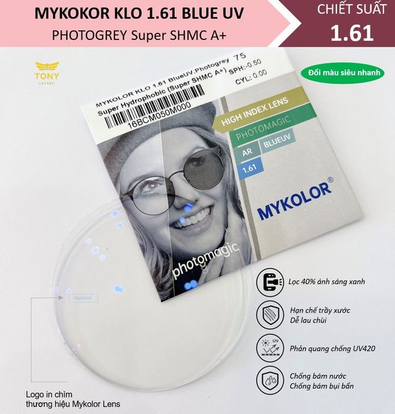 Tên sản phẩm: Mykolor KLO 1.61 BlueUV.Photogray